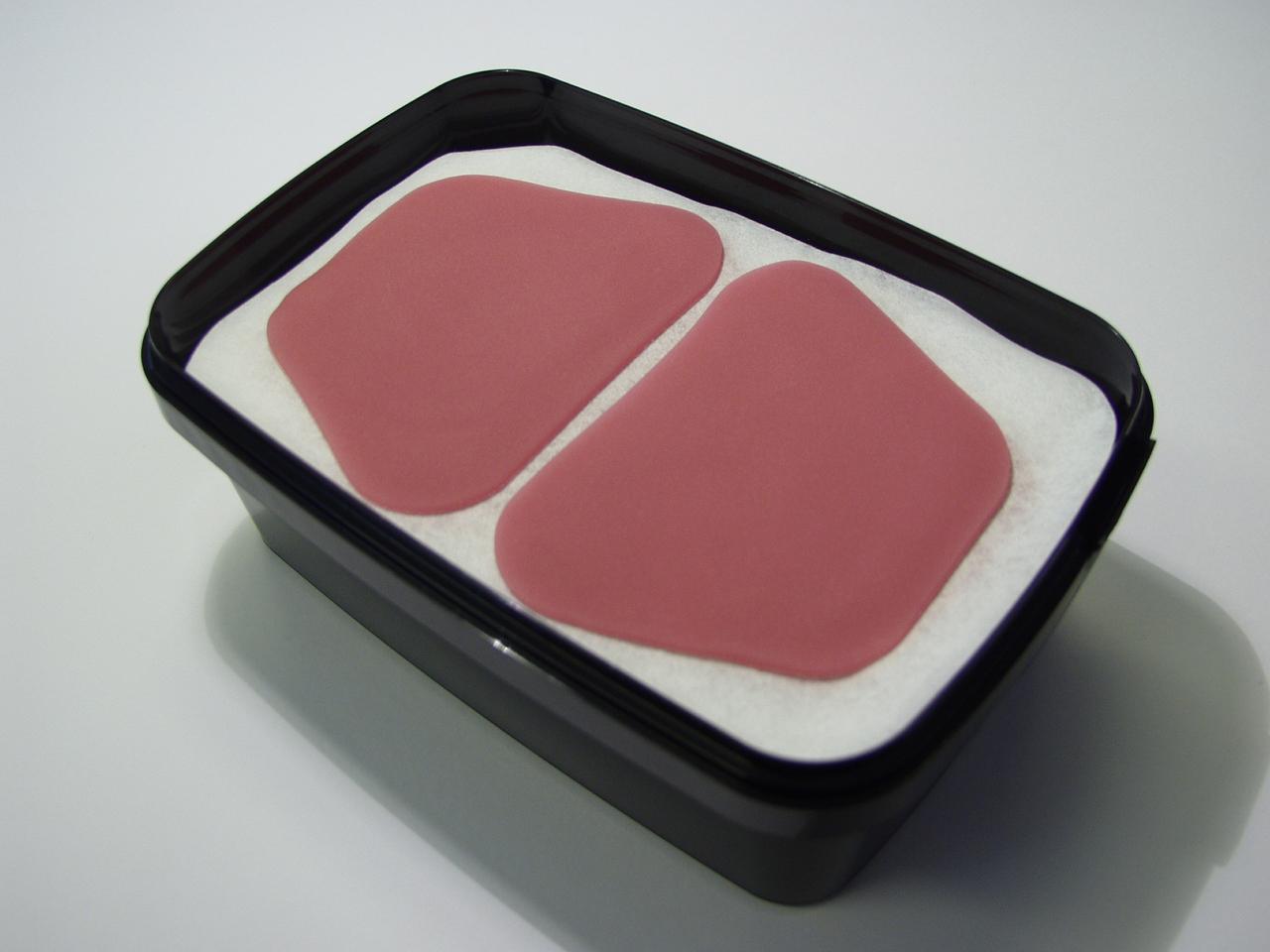 The sheets are a anatomically shaped and vestibular enlarged for better use on moulds of dentate jaws. The design and the handling characteristics make the sheet suitable for the upper as well as the lower jaw.