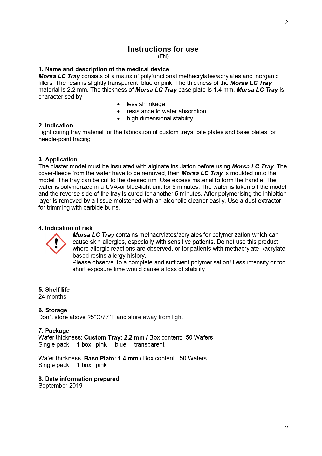 “setting time”: die Aushärtezeit hängt von der Qualität des Polymerisationsgerätes ab, zwischen 2 – 10 Minuten.